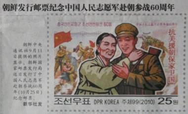 Back on the 12th September, before all this coverage, the Chengdu Business Daily had a lovely article, tucked away on page 7, reporting that North Korea were currently publishing stamps to commemorate the 60th Anniversary of the Chinese People’s Volunteer Army coming to the aid of the embattled state during the Korean War. |