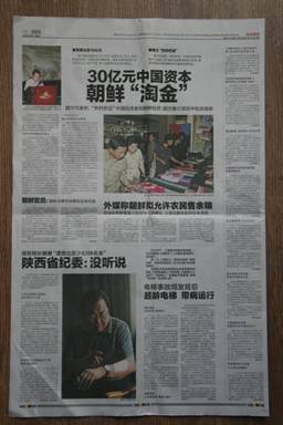 Take my local, the ‘Chengdu Business Daily’. When it comes to the inside story of what is happening in North Korea, clearly this paper has contacts at the highest level. I’m not joking. When Western media outlets were poring over grainy screenshots of Kim Jong-un and his wife with what appeared to be a giant unlicensed Mickey Mouse, this paper ran a full page story with crystal clear shots of him and his wife, including pre-marriage shots of her career as a singer, and even gave the age of their daughter. If London’s Fleet Street wouldn’t call that a scoop, I don’t know what is. |